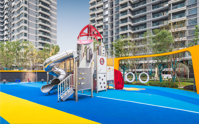 作為社區標配的兒童游樂區,也因美盛的用心與投入獨具特色。記者了解到,為了融會“寓教于樂”的社區理念,兒童游樂區在原定方案的基礎上進行了整體設備優化、升級,均采用進口和國內一線品牌,像KOMPAN、浪奇。場地內不僅有網紅月光秋千,造價數十萬元的大型火箭滑滑梯,更暖心設置涂鴉墻、搖搖馬、傳聲筒、游戲器械、勇氣探索設施、戶外課堂等活動設施,在滿足不同年齡段兒童活動需求的同時,將學科知識融入其中。