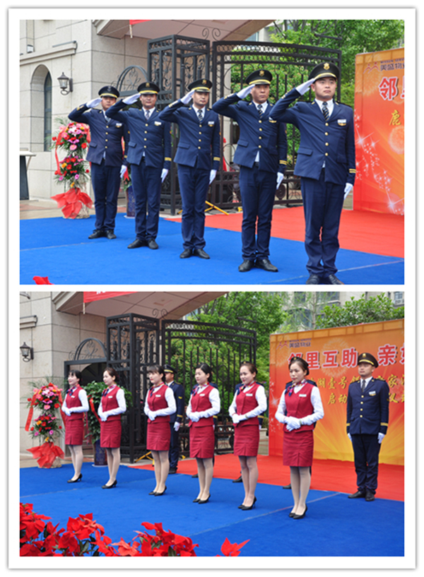 開幕儀式,我們物業(yè)秩序與客服團隊首先亮相,進行精彩日常高端服務(wù)的風采展示。禮賓團隊標準的敬禮、客服團隊優(yōu)雅嫻熟的服務(wù)禮儀及秩序團隊鏗鏘有力的盾牌表演,贏得到場嘉賓和業(yè)主的陣陣掌聲。