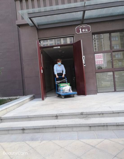 每每看到她拉著板車(chē),低頭對(duì)照手機(jī)里業(yè)戶(hù)的生活物資清單,內(nèi)心無(wú)法克制的暖流翻涌,眼淚漸漸盈眶。她可以選擇不聞不問(wèn)、裝聾作啞,也可以選擇推脫或是草草了事,但是她沒(méi)有退后,不僅給隔離戶(hù)提供所需物資,還有應(yīng)必答。